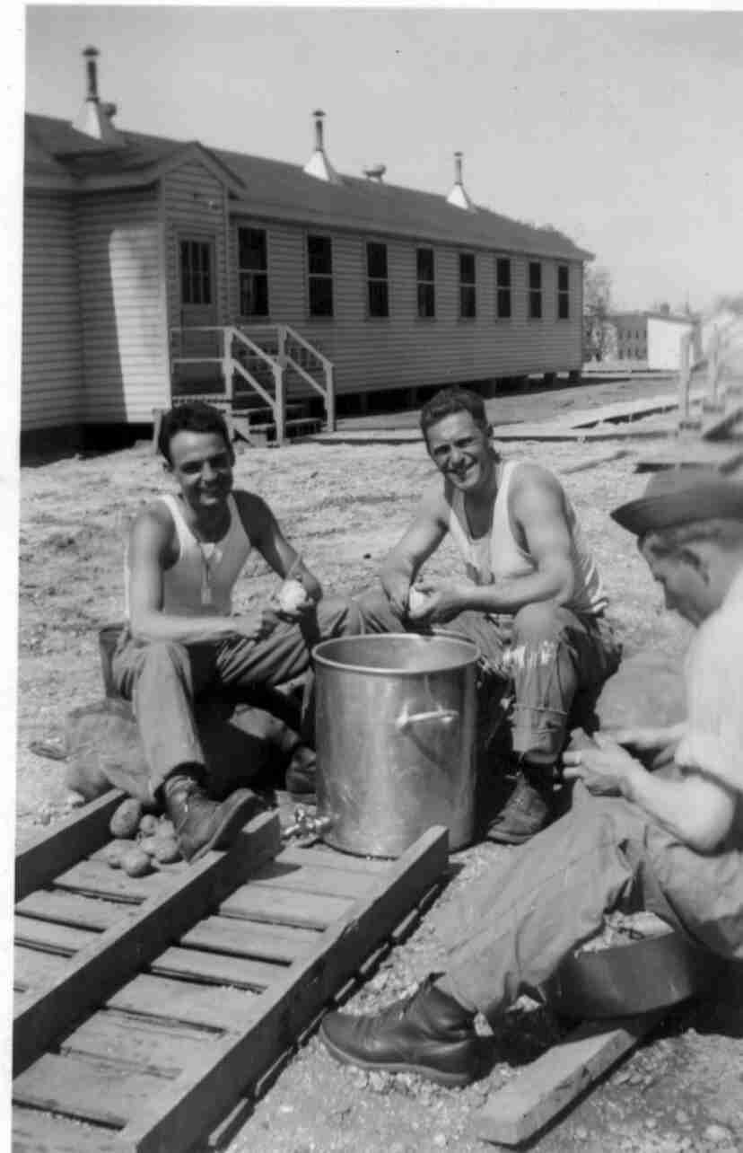 Our Recruit was one of the few who complained, his flanks protected by pals and proto-gourmets so that he could not be set upon as odd or picky; anyhow, it was commonly agreed that the food was tasteless and badly prepared. Whatever his opinion, our Boy was a chow-hound: "It tastes like horse manure, but it's good!" If not usually among the first in, he was ordinarily with the last to go out; he enjoyed sitting around with his buddies, talking, and watching the KPs come closer and closer, cleaning up, and then they went out for a smoke.