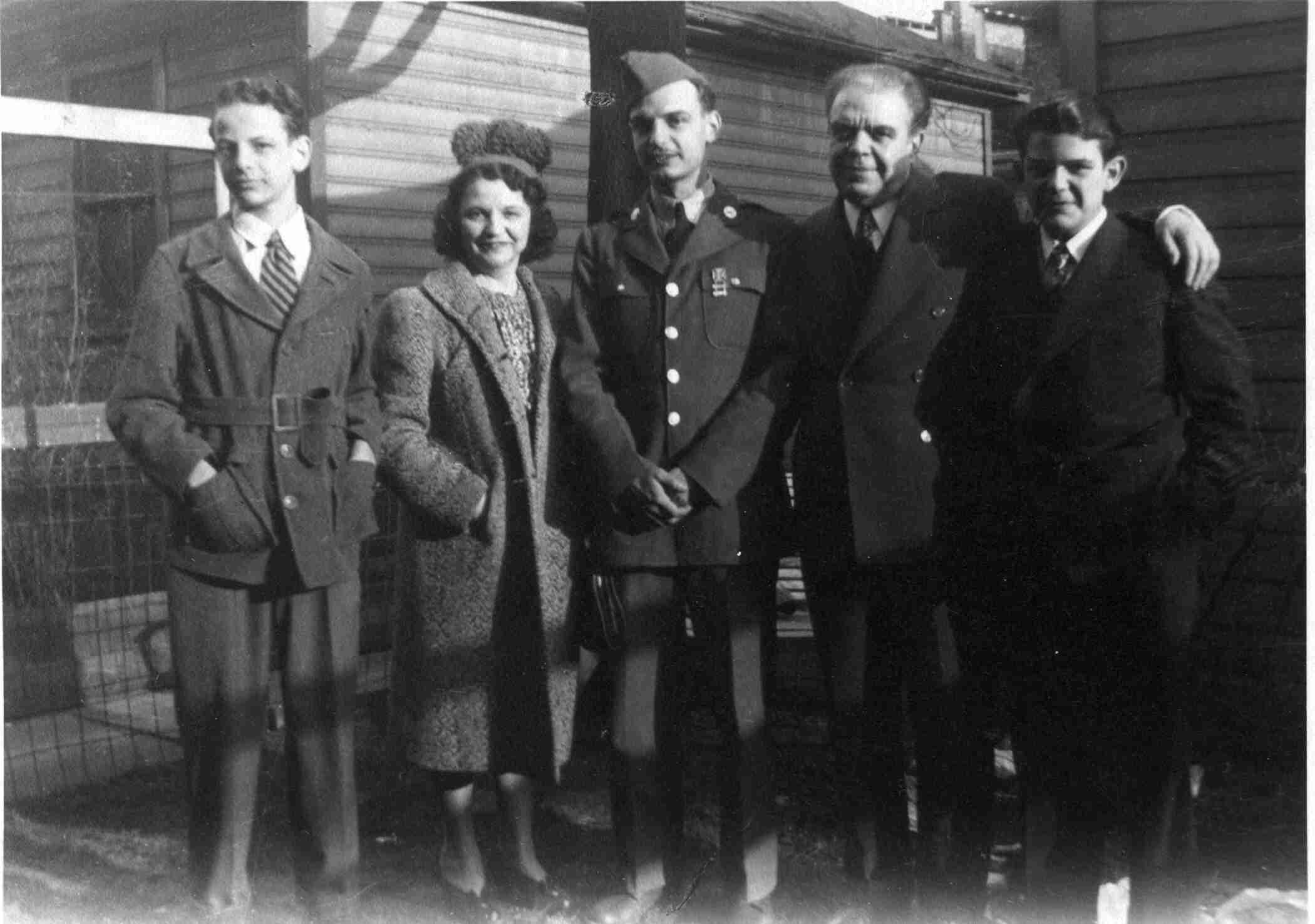 The Mom and Dad later joined them as witnesses, Hank having flown the coop, and they went over to the City Hall, where the problem now turned into a search for someone with the authority to conduct a civil marriage. Found: one heavy-set bespectacled dark- jowled Slavic type from the County Clerk's Office, who could perform the ceremony without a tremor of emotion, and free them after a few minutes to go out with the folks for a cup of coffee. Then home. He showed up late for roll-call on Tuesday, but the CQ covered up for him.