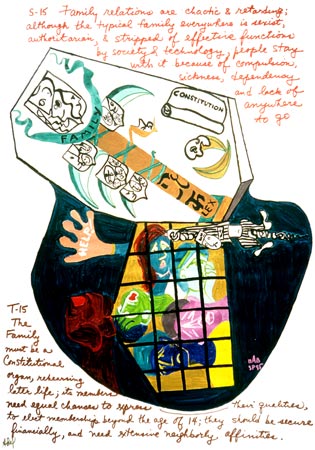 The family must be a constitutional organ, rehearsing later life; its members need equal chances to express their qualities, to elect membership beyond fourteen years; as a center of productive emotions; affiliated with surrogates for the old extended families; its members should be assured financial independence.