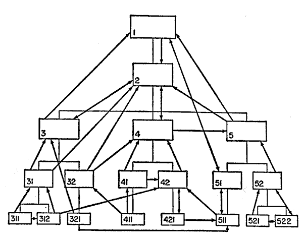This key problem of stability versus change in the classification system of the bureaucracy, together with several other conditions that are often present owing to factors that we shall presently discuss, leads to a situation that is most important in the study of administration. This situation is the presence of informal organization alongside the formal organization in administrative groups. Formal organization is the stipulated organization of lines of authority, and of responsibility, and of work in an office. Informal organization is the deviation from this stipulated organization. How formal and informal organization often do not coincide well may be seen in Figure 5.